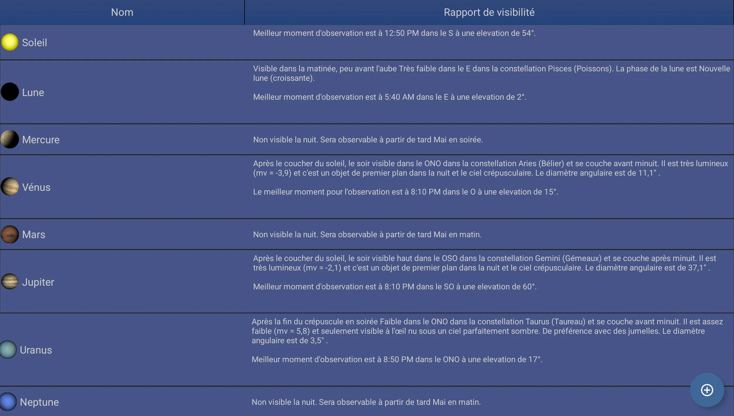 Elle demeure cependant parfaitement utilisable quelques heures avant ou après les instants mentionnés. La position des planètes et de la Lune est indiquée au 15 avril 2026.
