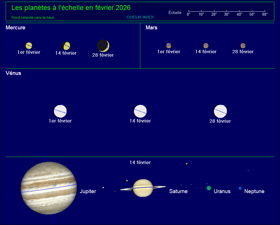 Elle demeure cependant parfaitement utilisable quelques heures avant ou après les instants mentionnés. La position des planètes et de la Lune est indiquée au 15 février 2026.
