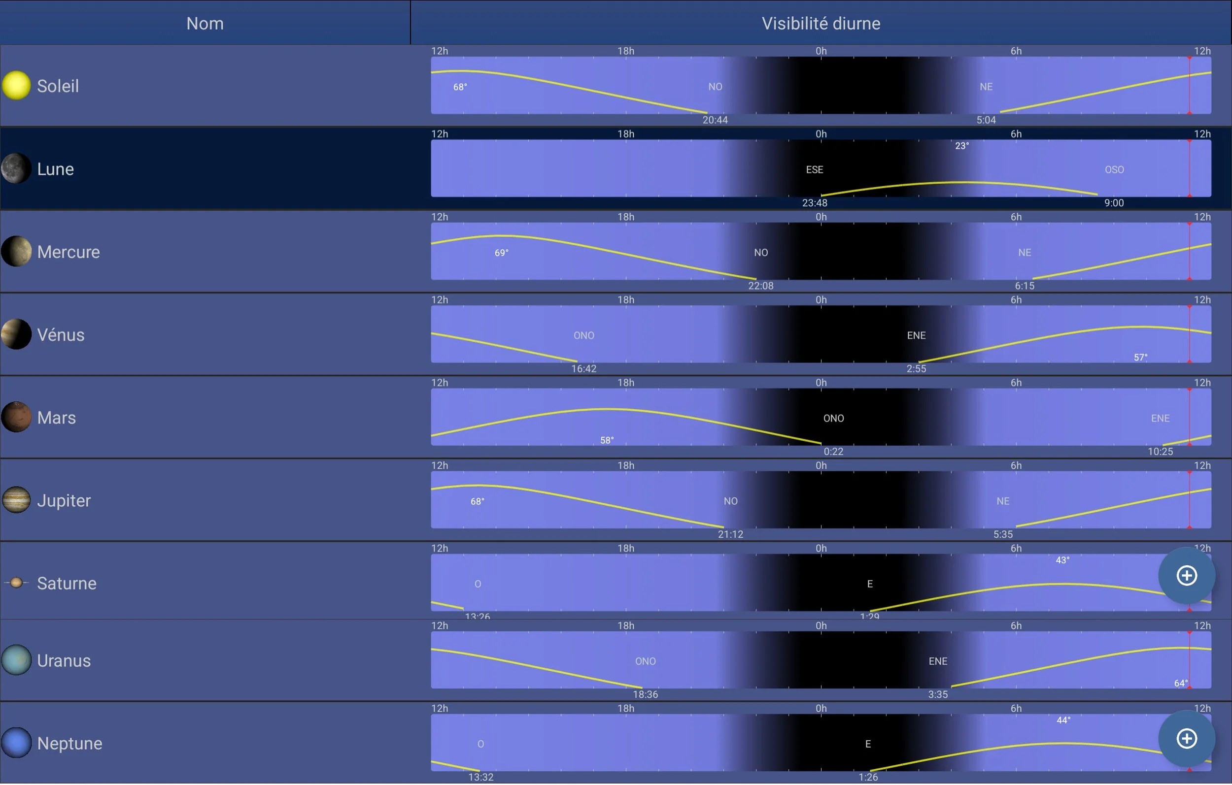 Elle demeure cependant parfaitement utilisable quelques heures avant ou après les instants mentionnés. La position des planètes et de la Lune est indiquée au 15 juin 2025.