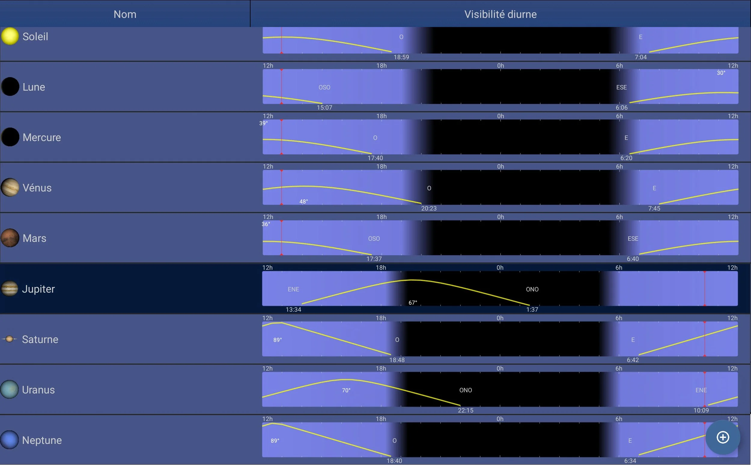 Visibilité des planètes pour mars 2025