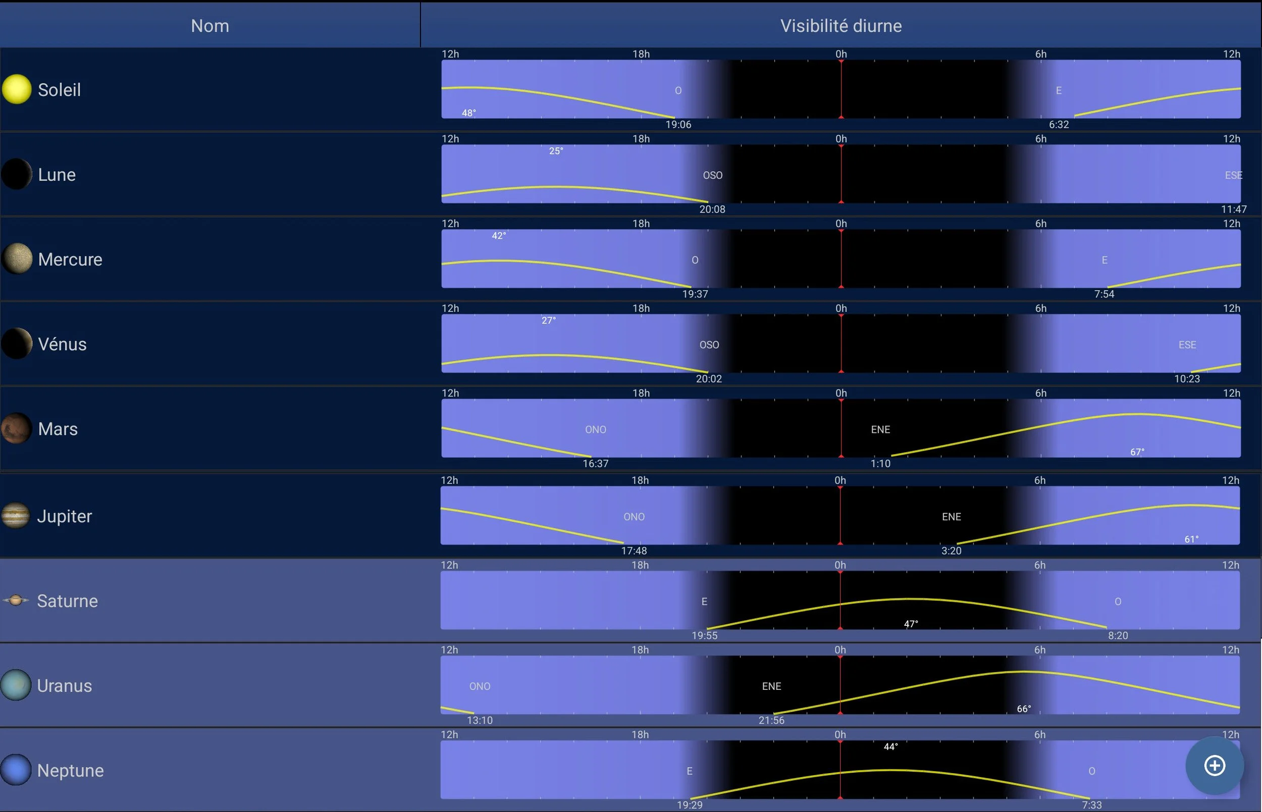 Visibilité des planètes pour de septembre 2026