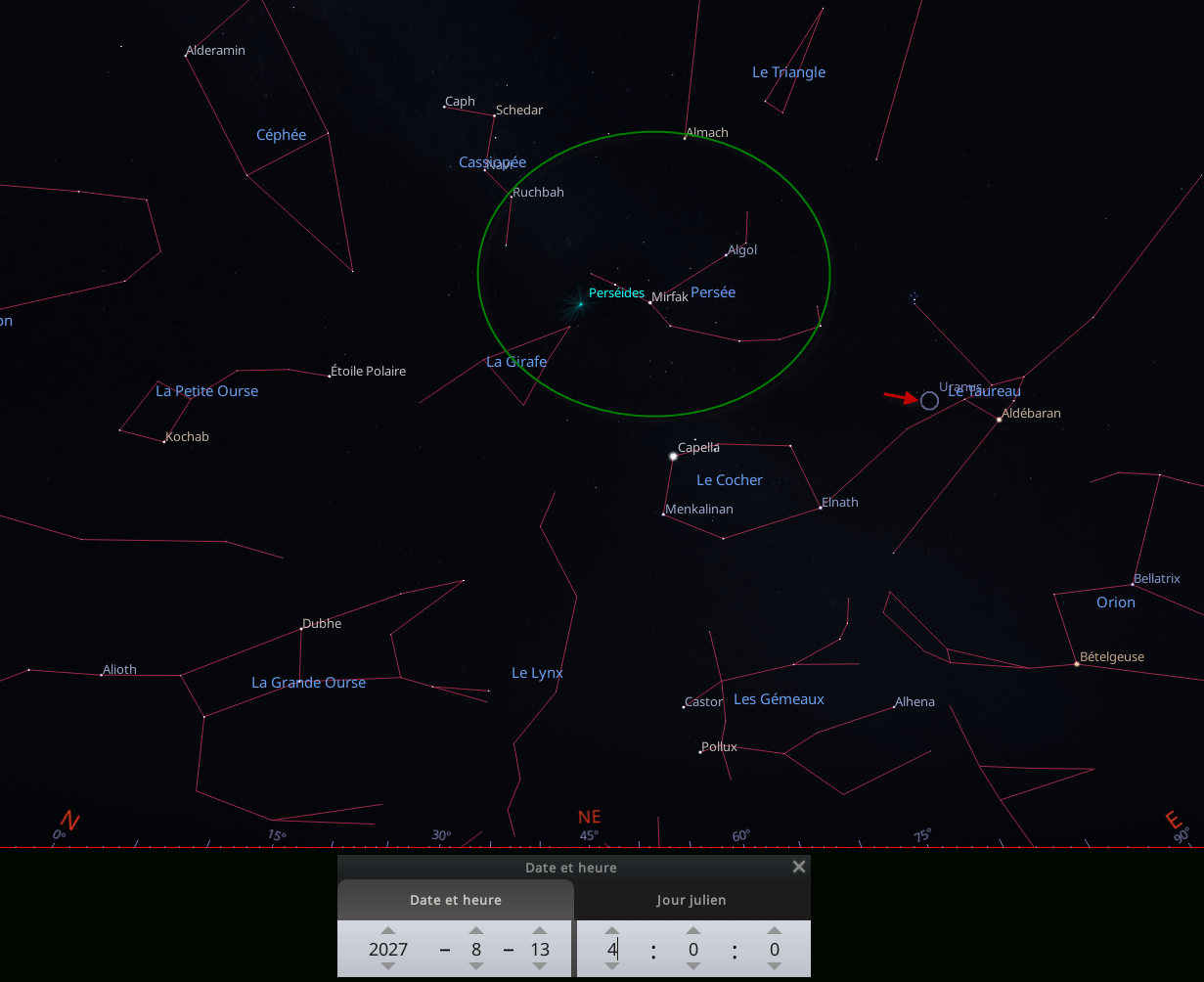 La période d'activité se situe entre le 17 juillet et jusqu'au 24 août, le maximum d'intensité sera dans la nuit du 12 au 13 août. Les Perséides sont l'essaim météorique le plus intéressant et le plus dynamique des dernières années. En 1991 et 1992, on a eu des sursauts d'activité pouvant aller de plus de 400 étoiles filantes à l'heure. Ce taux élevé a été provoqué par le passage de la comète 109P/Swift-Tuttle au périhélie en 1992. Cette comète est à l'origine de cet essaim, cependant sa période orbitale étant de 133 ans et actuellement elle s'éloigne de la terre donc il ne devrait pas avoir de soubresaut d'activité avant de nombreuses années.