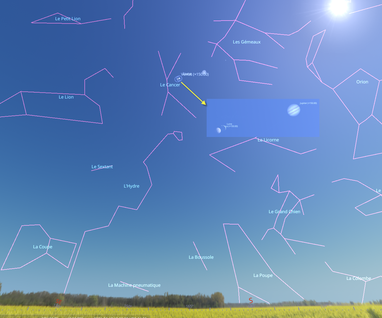Une extrême prudence est nécessaire lorsque des jumelles ou des télescopes pointent vers le ciel lorsque le Soleil est au-dessus de l'horizon, car même un coup d'oeil momentané sur le Soleil à travers un tel instrument peut provoquer une cécité permanente.